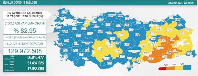 28 ARALIK SALI TÜRKİYE KORONAVİRÜS TABLOSU: